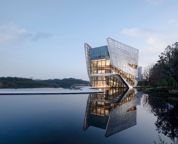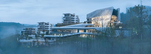 會所由10 Design設計,是一個約9000平方米的建筑,建筑共5層,位于一個陡峭的山坡上,毗鄰一個新的住宅區的主入口。俱樂部會所將作為進入新開發小區的主要門戶,并被設計為與鄰近場地的未來辦公大樓的配套。會所圍繞著一個面向住宅的多層大中庭組織空間,旨在舉辦社區活動和社交聚會。