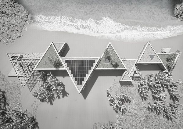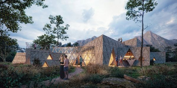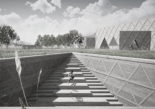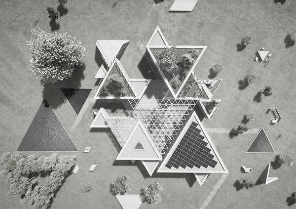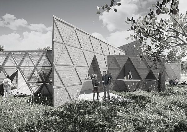 noa*的團(tuán)隊將CECUCO方案的幾何形狀建立在一個基本的形式上:三角形在平面(刻在一個3x3米的正方形中)和立面(標(biāo)在一個3×1.5米的正方形中)都是模塊化的重復(fù)。使用易于組裝的幾何形狀,使文化中心可以根據(jù)環(huán)境的需要進(jìn)行擴(kuò)展或收縮。此外,在城市規(guī)劃層面,三角形可以組合成各種形狀,形成不同的空間類型,如板塊、庭院或點狀村莊。