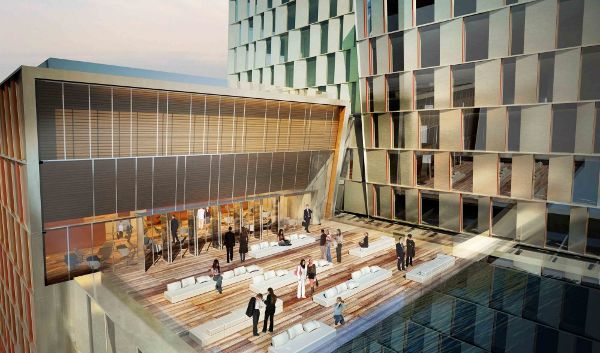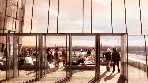 建筑低層設(shè)有內(nèi)部通道,可通往底層的車站,從這個車站可以通往斯德哥爾摩的中央火車站以及地鐵和當?shù)氐幕疖嚲€路。建筑上部將容納酒店、會議中心和公寓。四個體量中的三個將擁有綠色屋頂露臺,為斯德哥爾摩增添美景。其中一個露臺設(shè)有空中酒吧,允許公眾隨意進出。另外兩個分別屬于酒店和公寓。