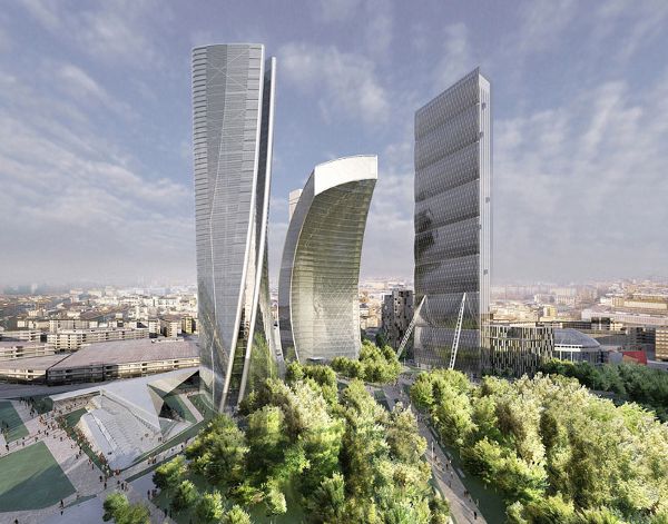 米蘭城市生活是一項(xiàng)規(guī)模宏大的商業(yè)和住宅開發(fā)項(xiàng)目,位于米蘭歷史上有名的前商品交易會(huì)的場(chǎng)地上:米蘭國際展覽中心。米蘭城市生活超過一半的地面都將由占地超過16.8萬平方米的景觀公園填滿,專門服務(wù)于行人與騎自行車的人。這片郁郁蔥蔥的步行空間周邊將圍繞一座雄偉的新廣場(chǎng),名為“piazza delle tre torri”廣場(chǎng)——由三座大廈以及周邊的一組住宅樓組成,這些建筑都由三位享譽(yù)世界的建筑師設(shè)計(jì)。如前所述,磯崎新和安德烈亞·瑪費(fèi)伊設(shè)計(jì)了磯氏大樓,這座大樓高達(dá)202米,計(jì)劃成為意大利最高的摩天大樓;旁邊是彎曲的150米高的利伯斯金大樓——你猜得沒錯(cuò),其設(shè)計(jì)者正是丹尼爾·利伯斯金。扎哈·哈迪德設(shè)計(jì)了一座170米的扭曲上升到天際的玻璃大樓,作為這個(gè)三部曲的完結(jié)篇。