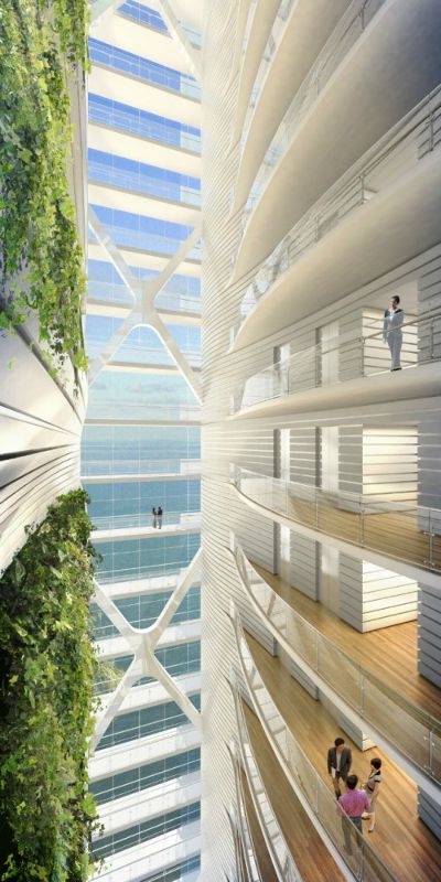 Skidmore, Owings & Merrill LLP(SOM)事務所芝加哥分部宣布,他們在一次國際設計競標中取得了勝利,這次競標是為位于中國吳江的綠地集團蘇州中心而舉辦的。這座大廈高358米,高效的分體式結構令人驚嘆不已,“帶有弧度的錐形構造將辦公、酒店和住宅結合在一個體量之內”。