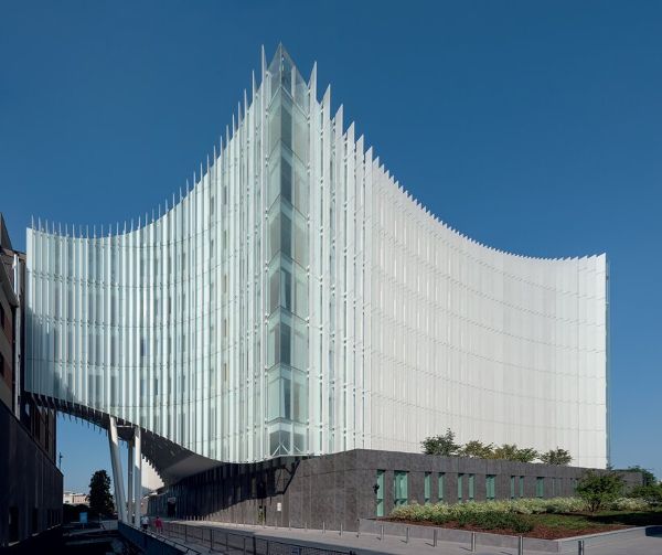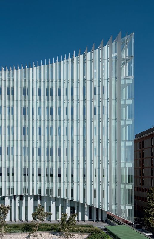 Mario Cucinella建筑事務(wù)所在設(shè)計米蘭圣拉斐爾醫(yī)院的新擴(kuò)建項目時,希望創(chuàng)造一個高效的建筑,以歡迎病人,并建立平靜的建筑性格。為了實現(xiàn)這一目標(biāo),該團(tuán)隊優(yōu)先考慮自然光,最大限度地保護(hù)隱私,并將該設(shè)施包裹在一個柔和的弧形幕墻系統(tǒng)中,陶瓷鰭片設(shè)計用于鎖定熱量。
