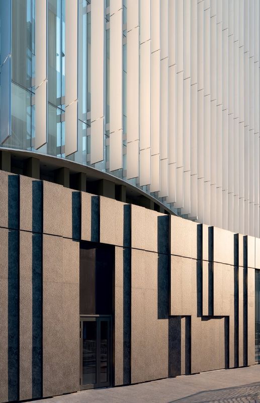 為了提高病人和工作人員的健康水平,盡可能地將自然光引入建筑。陽光被百葉窗式的立面處理所散射,以減少熱量的攝入。陶瓷百葉窗的深度根據(jù)太陽的路徑而變化。陶瓷還被特別設(shè)計用來分解煙霧顆粒和保存熱量,從而減少60%的能源消耗。此外,約60%的立面是由不透明的絕緣板組成的,改善了建筑圍護(hù)結(jié)構(gòu)的能源性能。