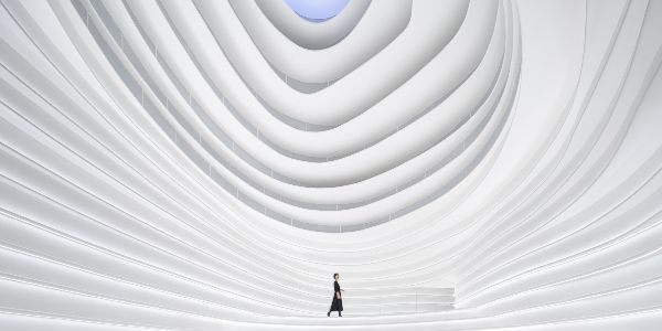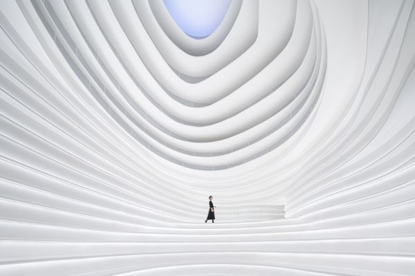 總部位于北京的PINES ARCH公司在中國杭州設計了用于活動和展覽的實驗空間。像蟲洞,其內部形成了一系列蜿蜒的白色層,從地板上出現,搖擺到最頂端。“Golong蟲洞”是該品牌的總部大樓,采用靈活的設計,同時反映了該品牌好奇和變革性語言的美學觀念。