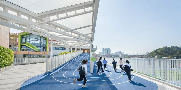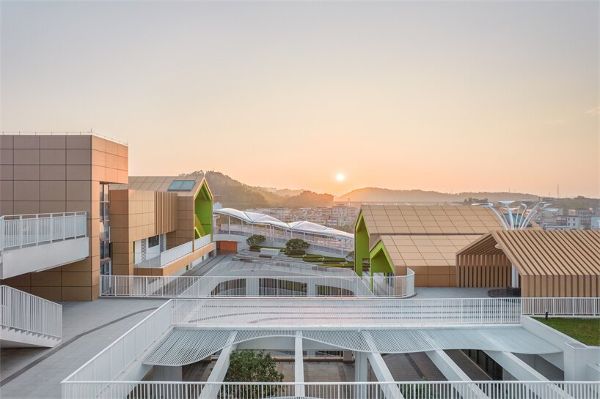 由CMAD建筑師設計的位于深圳坪山區的“東部大灣區實驗學校”是一個充滿活力的綜合體,其靈感來自于田園美學。該項目橫跨整個場地,在該地區土地極度短缺的情況下,增加建筑密度。由于教育需求激增,導致了校園建筑的過度垂直延伸,切斷了校園、社區和自然之間的空間聯系。