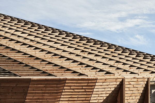 材料:約65公里長的歐洲熱處理過的松樹樹木,用于建筑的外墻和屋頂建設。
