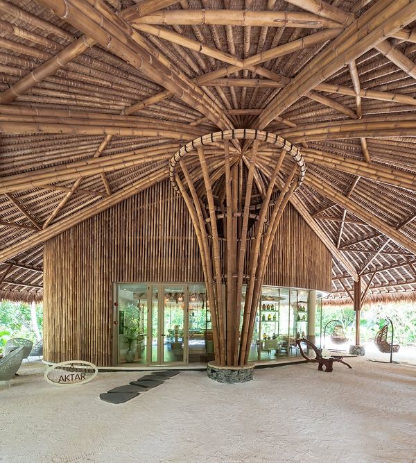 Desa Bambu 設(shè)計(jì)團(tuán)隊(duì)嘗試用竹子建筑建造一個(gè)由漂浮在馬爾代夫群島上的幾個(gè)露天亭子組成的健康療養(yǎng)所。 Joali Being度假村通過(guò)在竹子框架上開(kāi)發(fā)的可持續(xù)建筑綜合體提供沉浸式體驗(yàn),頂部是自然編織的屋頂檐篷。 設(shè)計(jì)團(tuán)隊(duì)與 Asali Bali 工程集團(tuán)合作,實(shí)現(xiàn)了 Bodufushi 島上的酒店和水療中心項(xiàng)目,包括俯瞰大海的 Yoga Shala 單元以及與自然環(huán)境融為一體的 Apothecary 建筑和休閑區(qū)。工程和施工旨在保持浮動(dòng)休閑綜合體的建筑理念,提供技術(shù)解決方案和細(xì)節(jié),以保持結(jié)構(gòu)在特定島嶼氣候下的質(zhì)量和穩(wěn)定性。