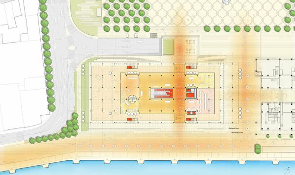 一樓環繞著玻璃圍欄,為游客創造了一個安全的環境,讓他們可以享受戶外咖啡館和雕塑花園。在內部,一個宏偉的中央樓梯連接著所有的公共樓層,從地下電影院到上面的畫廊。每個登陸大廳都可以欣賞到大海和公園的壯麗景色,形成一條貫穿建筑體量的南北軸線。