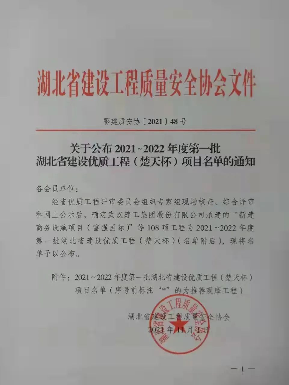 繼湖北百年建設監理有限責任公司承監的咸寧碧桂園溫泉城博實樂學校項目獲得2021-2022年度第一批“楚天杯”獎項之后,公司承監的聯投國際城(京山)四期項目及聯投水鄉小鎮二期(2.3期)再獲殊榮。