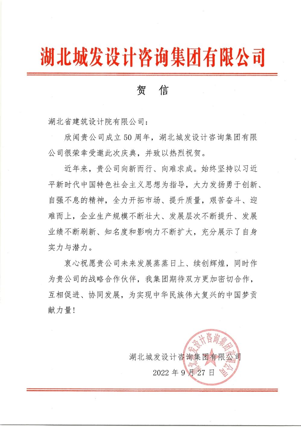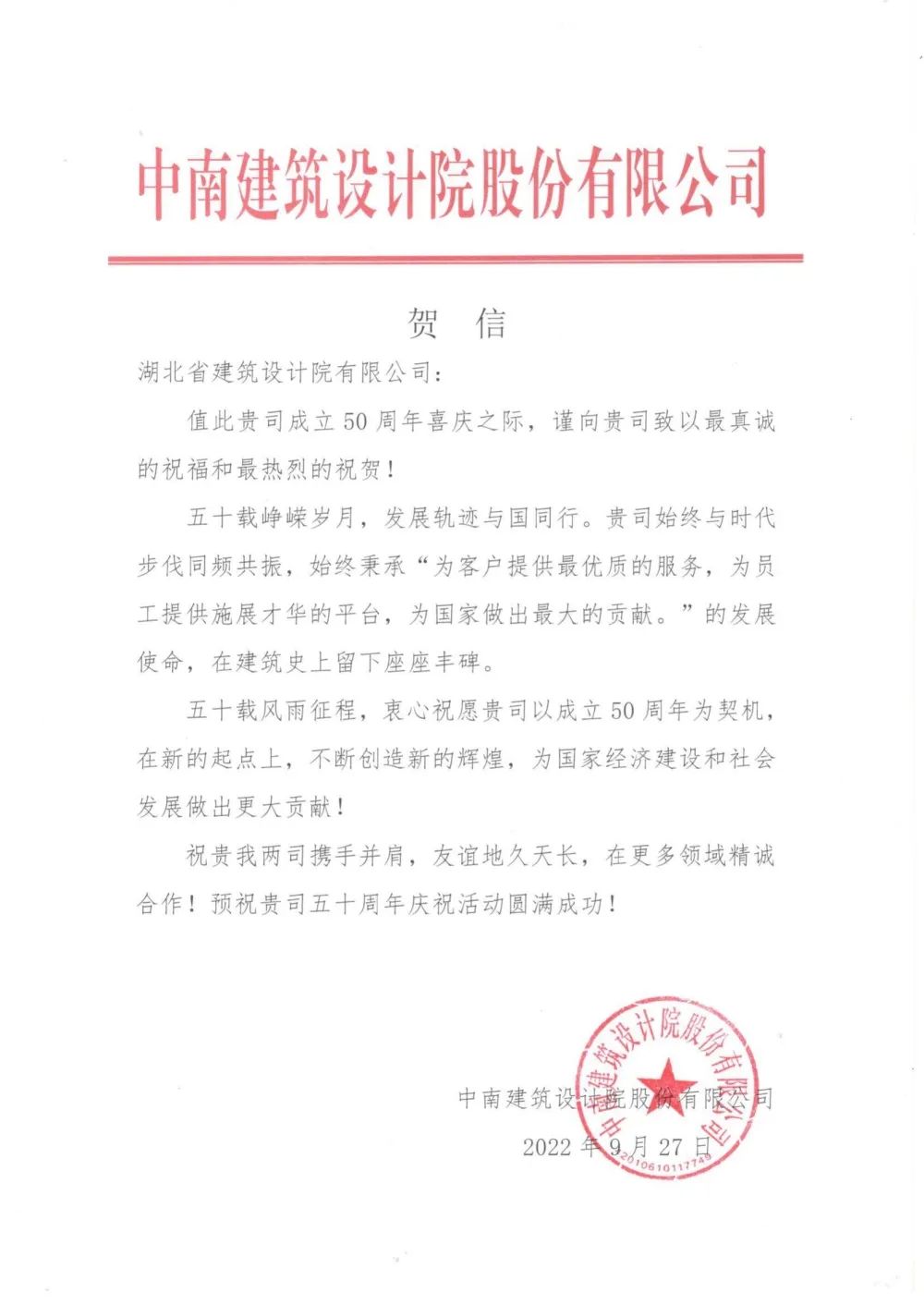 2022年是湖北省建筑設計院有限公司成立50周年。50載風雨兼程,50載碩果累累。廣大合作伙伴與我們一起,在市場開發、技術攻堅、科研合作等多方面充分發揮各自優勢,共同發展、資源互補、合作共贏,分享發展新機遇,共創發展新輝煌。